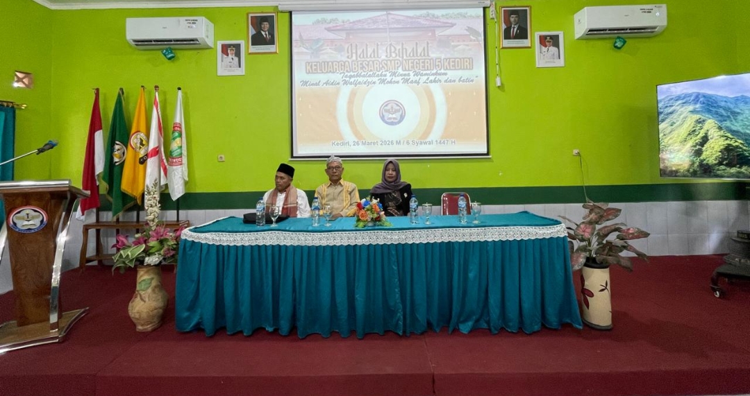 Dilaksanakan 26 Maret 2026 Ruang Kalimasada SMPN 5 Kediri Dihadiri Pengawas Sekolah, Komite Sekolah dan semua Kel. Besar SMPN 5 Halal Bihalal bertujuan untuk memperbaiki hubungan yang terputus, menciptakan harmoni, dan mempromosikan perbuatan baik. Tauziyah Halal Bihalal diisi oleh ustad Ahmad Nur Khoir. Mengingatkan untuk gemar  bersedekah. amalan memberi harta atau non-harta (seperti senyuman,...